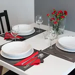 Aparthotel Happy Tower de Cracovie propose 29 chambres avec une cafetière/théière, et des installations comme un équipement de repassage. Les chambres sont décorées avec des articles de design joli et certaines d'entre elles sont équipées d'un réfrigérateur et de la vaisselle. Les extras comprennent une douche à l'italienne et une toilette séparée dans la salle de bain et le confort est assuré par un sèche-cheveux et des draps de bain. Aparthotel Happy Tower offre une vue sur la cour dès ses chambres.